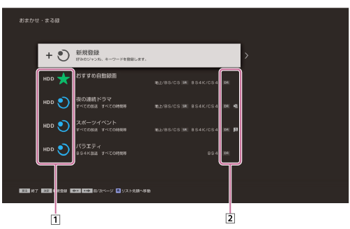 キーワードまたは詳細設定した内蔵/外付けハードディスクへのおまかせ自動録画設定 |