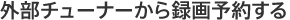 スカパー! e2は本機にチューナーが内蔵されているため、受信契約をするだけで録画できます。スカパー!やスカパー! HD、ケーブルテレビは外部のチューナーで受信して録画します。それぞれのチューナーで録画予約方法が異なります。ご使用のチューナーを確認して、録画予約方法をご覧ください。
