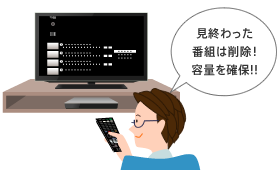 見終わった番組を削除すれば、そのぶん内蔵ハードディスク (HDD) の空き容量を増やせます。