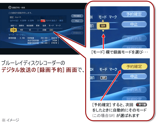 なお、録画予約をしたことがない場合は、お買い上げ時に設定されている [SR] モードで録画されます。