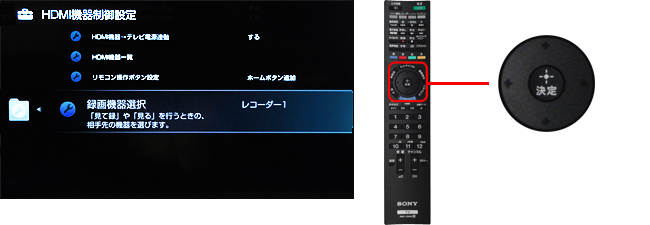 リモコンの↑↓で[HDMI機器制御]を選び「決定」ボタンを押します。