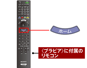 リモコンの「ホーム」ボタンを押してテレビのホームメニューを表示します。