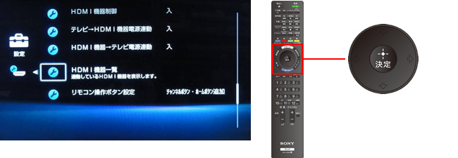 リモコンの↑↓で[HDMI機器一覧]を選び「決定」ボタンを押します。