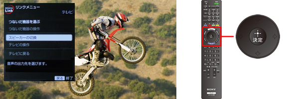 ホームシアターシステム/シアタースタンドシステム(SOUND SYSTEM)が一覧に表示されていない場合は、リモコンの「決定」ボタンを押してください。つないだ機器が一覧に表示されればHDMI機器制御が有効になっています。表示されない場合は、つないだ機器の取扱説明書をご覧になり必要に応じて設定してください。