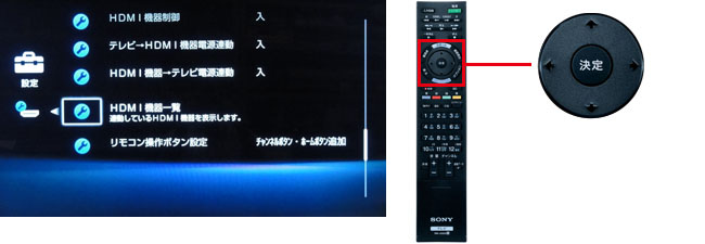 リモコンの↑↓で[HDMI機器一覧]を選び「決定」ボタンを押します。