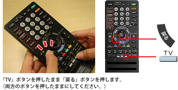 • 必ず「TV」ボタンを先に押し続けてください。「戻る」 ボタンを先に押して操作を続けても、登録できません。