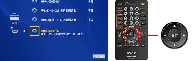 マルチリモコンの↑↓で[HDMI機器一覧]を選び「決定」ボタンを押します。
