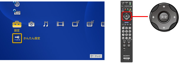 [設定]→[かんたん設定]の順に選んで「決定」ボタンを押す。