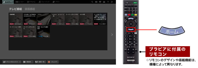 ブラビアに付属のリモコンの「ホーム」ボタンを押す。