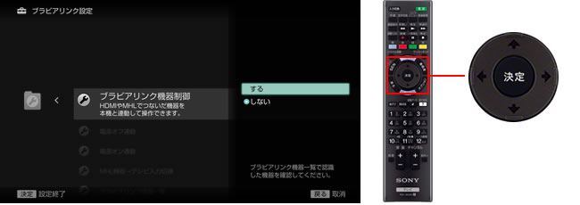 「戻る」ボタンを押して、[ブラビアリンク設定]に戻ります。