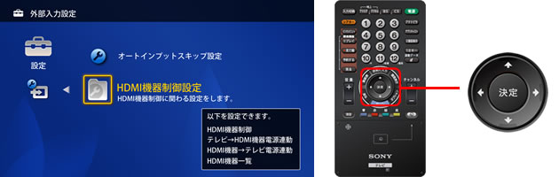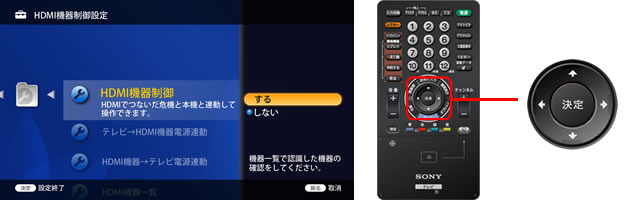 マルチリモコンの↑↓で[HDMI機器制御設定]を選び「決定」ボタンを押します。
