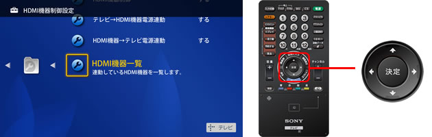 マルチリモコンの↑↓で[HDMI機器一覧]を選び「決定」ボタンを押します。