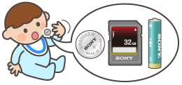 乾電池/ボタン電池/メモリーカード/小型リモコンなどの保管場所に注意する