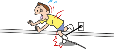 電源コードやパソコン接続ケーブル、A/V接続ケーブルなどは、足に引っ掛けると製品の落下や転倒などによりけがの原因となることがあるため、充分注意して接続・配置してください。