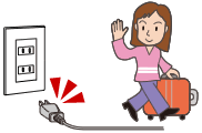 旅行などで長時間、ご使用にならないときは、電源プラグを抜く