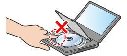 液晶画面の開閉時、ディスクぶたを閉じるときなどに手をはさまれ、けがの原因となることがあります。