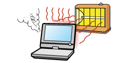 熱がこもってケースが変形したり、火災の原因となることがあります。