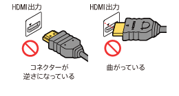 次のような場合、HDMI出力端子やコネクターを破損させるおそれがありますのでご注意ください。