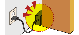 ACアダプターは熱がこもらないよう充分なスペースを空ける