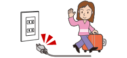 旅行などで長時間、ご使用にならないときは、電源プラグを抜く