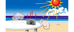 結露とは、製品本体を寒い場所から急に暖かい場所へ持ち込んだときなどに、製品内部や外部に水滴が付くことです。この状態でお使いになると、故障の原因になります。