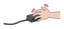 通電中のACアダプター、バッテリーチャージャー、充電中のバッテリーや製品に長時間ふれない