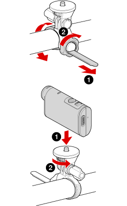 カメラやマウントは取扱説明書に従って確実に取り付けてください。正しく取り付けないと、落ちるなどして事故やけがの原因となります。