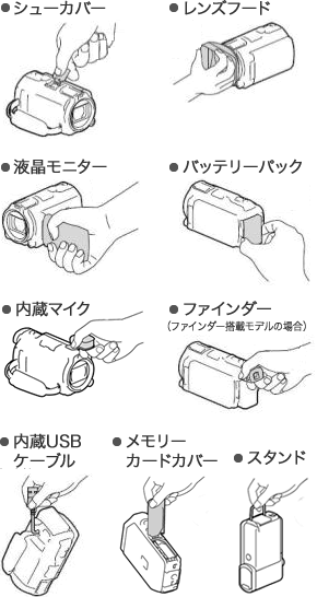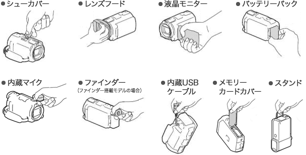 電池や付属品、メモリーカード、アクセサリーなどを取り外すときは、手をそえる