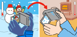ビデオカメラを温度差の激しい場所へ持ち込むときは、ビニール袋に空気が入らないように入れて密封します。約1時間放置し、移動先の温度になじんでから取り出します。