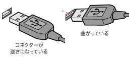 USB端子は接続の方向を確認して、まっすぐ差し込んでください。