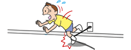 電源コードや信号ケーブルは足にひっかけると機器の落下や転倒などにより、けがの原因となることがあります。