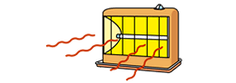 直射日光のあたる場所や熱器具の近くに設置・保管しない