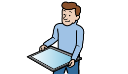 ボタンに触れないように側面を左右から持ちディスプレイ画面を上に向けて、運んでください。