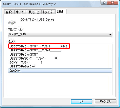 [ SONY TJS-1 USB Deviceのプロパティ ] の画面で [ 詳細 ] を選択します。