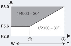 1/4000秒〜30秒の範囲で選べる。