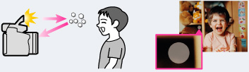 暗い場所、または逆光のとき、自動で発光する。