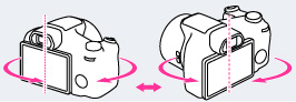 立体的に再生するポイント[スイングマルチアングル]で撮影した画像を立体的に見るために、本機をイラストのように水平に左右に傾けてください。
