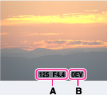 シャッタースピードと絞り(F値)を設定すると設定した値と本機が判断した適正露出の差が画面上にEV値で表示されます。