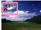 おまかせシーン認識では、シーンを認識したときと状況を認識したときでマークの出る位置が異なります。認識されたシーンは、上段に