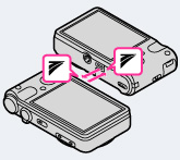 • 図のようにカメラ同士を平行にして(TransferJet)マークを合わせると送受信しやすくなります。