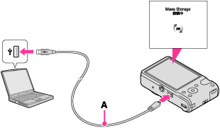 本機とパソコンをマルチ端子専用USBケーブル(付属)(A)で接続する