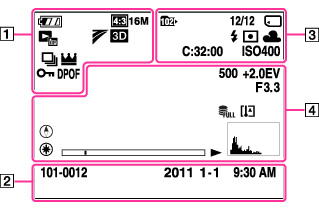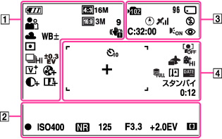 (画面表示設定)で、液晶画面の表示が切り替わります。撮影時のアイコン一覧