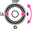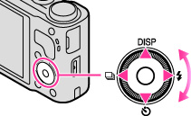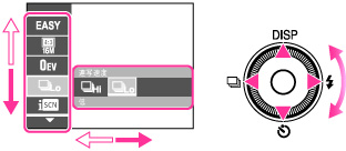 (フラッシュ)の機能が割り当てられています。各アイコン方向を押すことで、その機能選択画面に移行します。