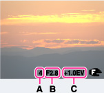 シャッタースピードと絞り(F値)を設定すると設定した値と本機が判断した適正露出の差が画面上にEV値で表示されます。