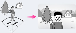 中心にしたい被写体に対して、左右45度を目安にスイングしてください。