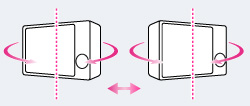 [スイングマルチアングル]で撮影した画像を立体的に見るために、本機をイラストのように水平に左右に傾けてください。