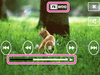 動画再生中に画面をタッチすると、再生バーが表示され、動画の再生位置を確認できます。また、操作ボタンも表示されます。