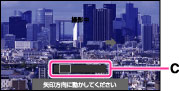 画面上の矢印方向に、カメラをガイド(C)の終端まで動かす