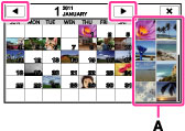選択した日付の画像(A)を上下になぞると、ページの送り戻しができ、画像をタッチすると1枚再生に戻る。