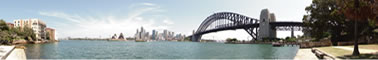 カメラを動かす間に複数の画像を撮影し、合成して1枚のパノラマ画像を作成します。